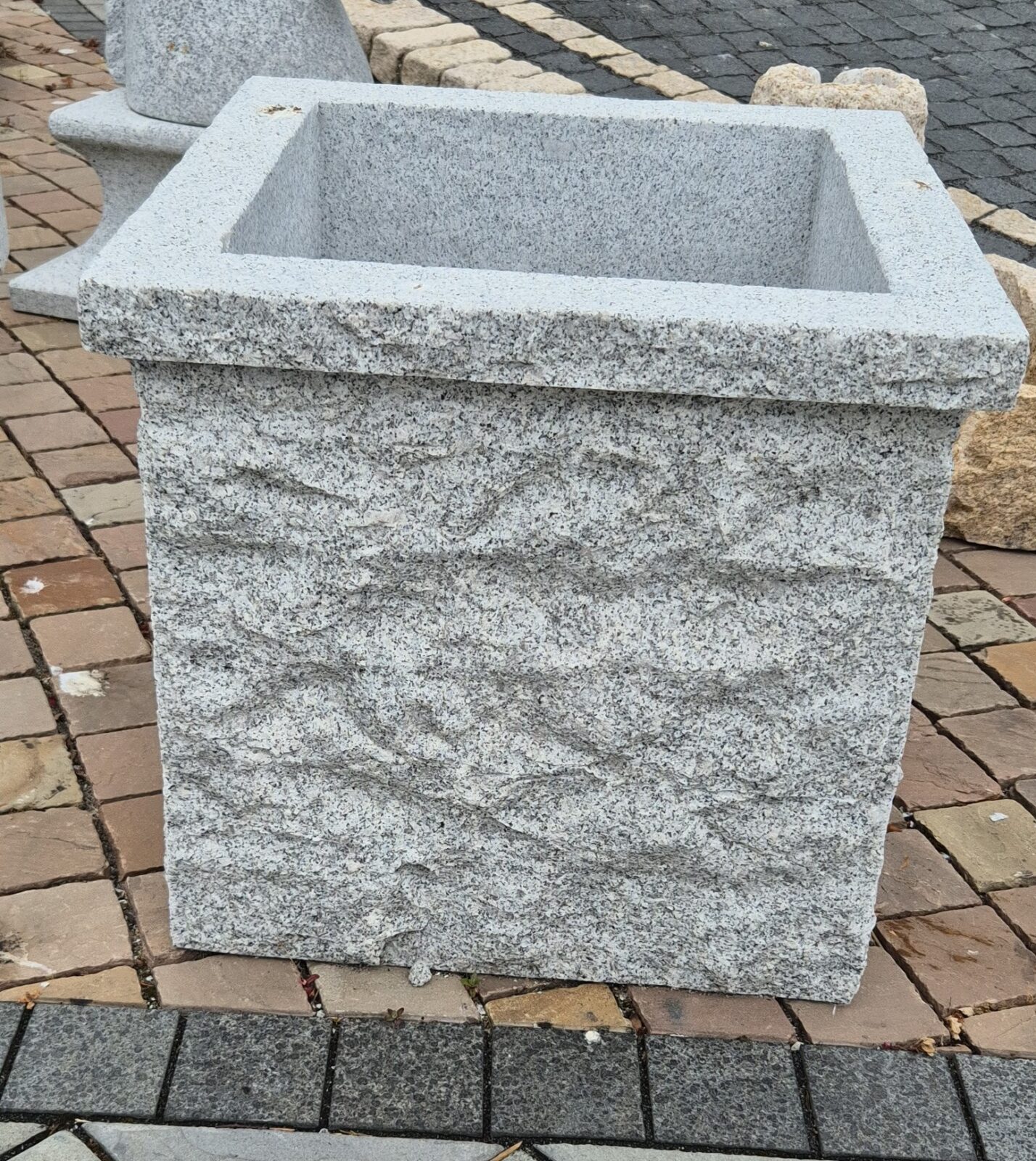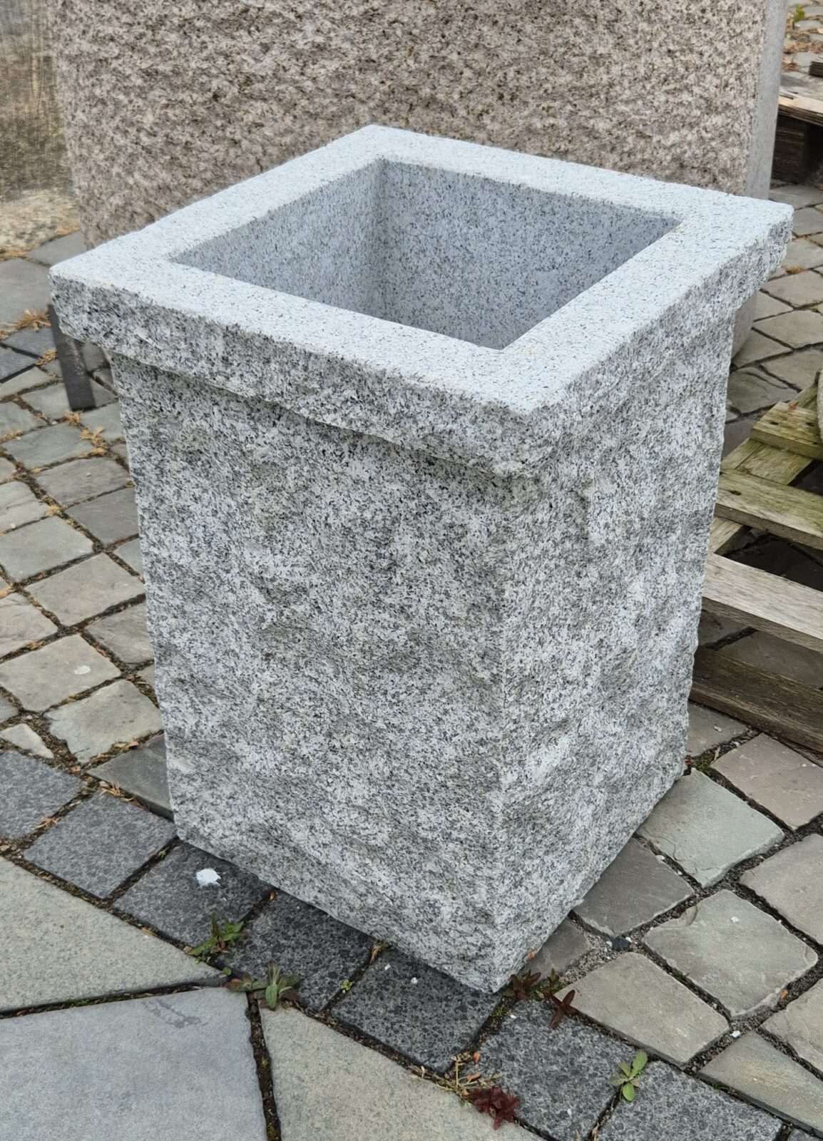 Coarse Chinese Grey Granite Planters available in 520x520x500mm and in 350x350x500mm, a beautiful addition to a front door or a patio